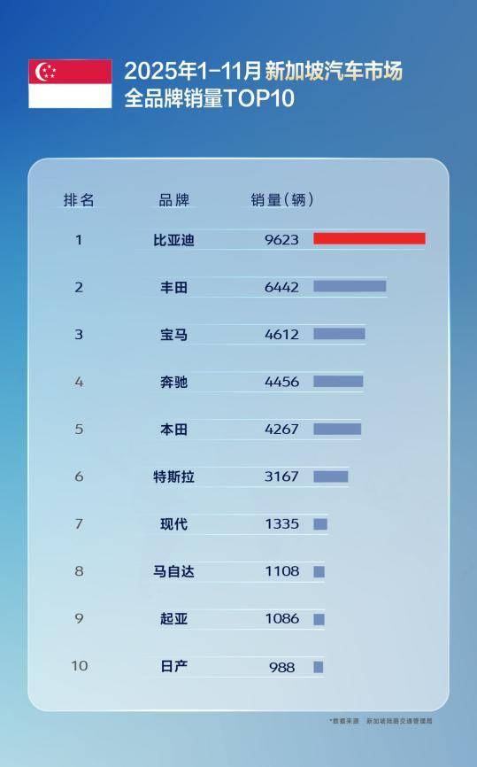11月,比亚迪在巴西、土耳其、意大利、西班牙、匈牙利、克罗地亚等国拿下了新能源汽车销量第一,在新加坡等国家获得全品牌销冠。多国销冠全面超越,1-11月累计表现同样不俗,在巴西、土耳其、西班牙、意大利等国,比亚迪位列新能源汽车品牌销量榜首;在新加坡、中国香港等地区市场荣膺全品牌销量第一,备受消费者认可。