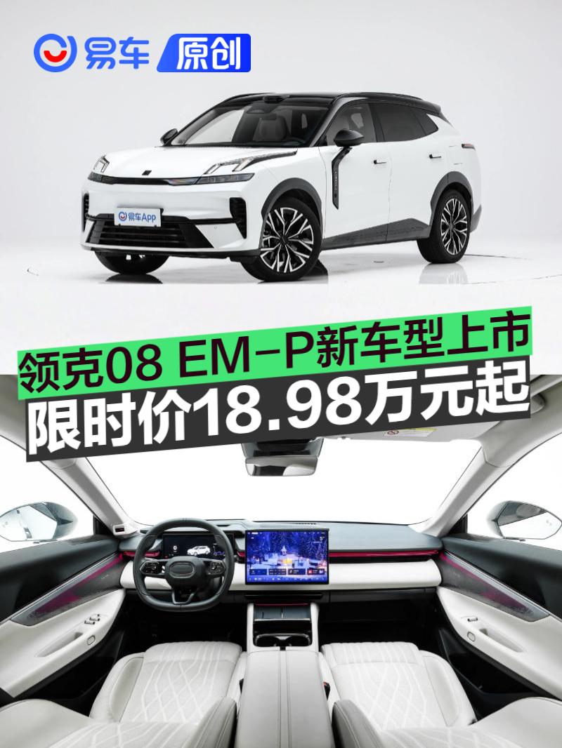 领克08 EM-P 230超长续航Ultra版上市 限时价18.98万元起