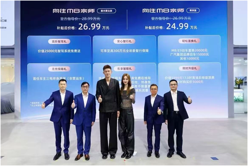 10月16日,备受瞩目的传祺向往M8车系全新力作——向往M8宗师,在2025中国国际新能源和智能网联汽车展览会上重磅发布。新车上市指导价26.99万元起,综合补贴后,售价低至24.99万元起。在发布会上,前中国男篮队长、八冠王周鹏夫妇作为传祺向往M8宗师的首位车主亲临现场。