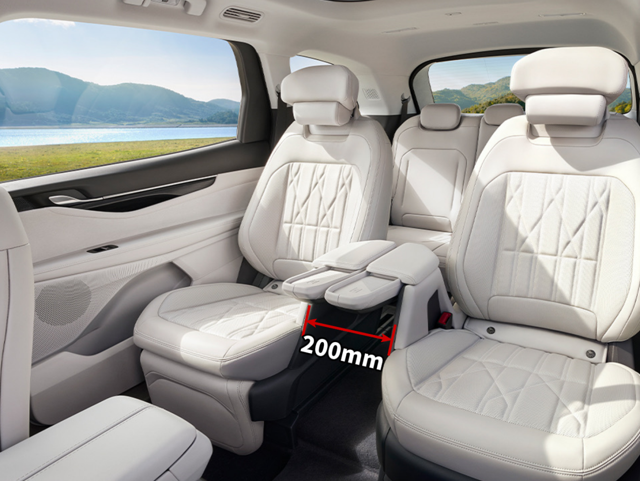 223座椅布局还有个突出的优点,二排过道宽度能达到200mm,这是什么概念?就算是小孩子在二三排来回跑都没有问题,上下车非常的方便。带着家人出去游玩,遇到雨天也不会局促,也不用扳动二排座椅,直接就能走进第三排。而汉兰达只有232座椅布局,并且空间坐上去也比较紧凑。