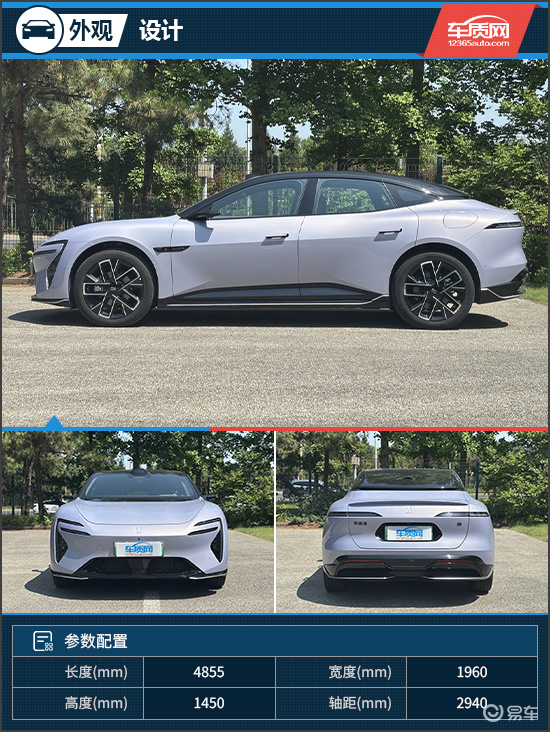 评测车延续了阿维塔品牌一贯圆润而个性的车身线条。前脸采用“猎豹凝势”设计语言,纤细的分体式大灯辨识度极高,自发光Logo则巧妙融入车身,视觉效果非常协调。车身侧面,悬浮式车顶与无框设计车门为评测车的颜值打下了良好基础,溜背的设计也使得其身段更显紧凑。车尾部分则延续了阿维塔12的设计理念,层次感分明,并且没有提供后风挡玻璃,想要观察后方需通过车内的流媒体后视镜。另外,配备的掀背式后备厢凭借巨大的开启角度,带来了十分出色的实用性。