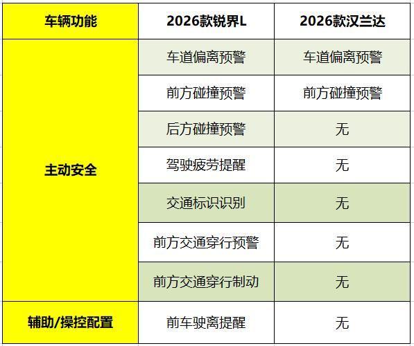 福特锐界L和丰田汉兰达都是全系标配L2级驾驶辅助,但区别在于,福特锐界L除了起售车型之外,其余车型都提供前方穿行碰撞预警/制动,丰田汉兰达全系不提供。