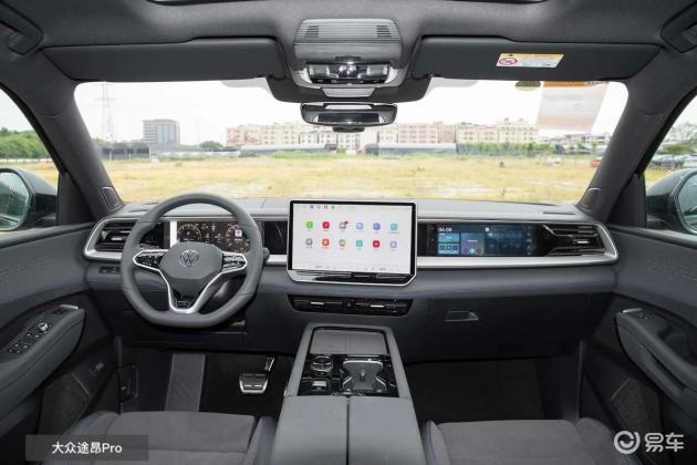 途昂Pro的内饰其实也有大面积软包,而且从多区域的触摸面板到10.25+15.0+11.6英寸三联屏,它的数字化程度与间接风格也跟外观相呼应,看着反而有更多“电感”。此外,因为采用了旋钮式怀挡,扶手箱被释放了出来,除了烤漆旋钮外,腾出了更多小空间,整体简洁度要更高。