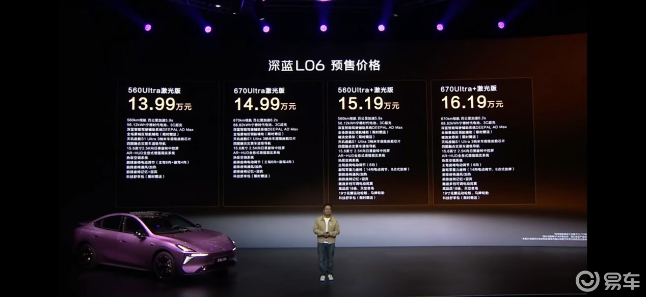 深蓝L06价格区间锁定在13.99–16.19万元,向上可挑战特斯拉Model 3焕新版、奔驰纯电CLA等车型,向下则有力压比亚迪秦L DM-i、小鹏P7i等车型的意思。但深蓝L06并不想靠单纯的低价来抢占市场,而是在同等价位下直接将二三十万元才会有的配置打包下放,这种降维打击式的定价逻辑,体现了长安深蓝对当下市场格局的深刻理解,要性能有性能、要智能有智能、要续航有续航,关键是配置还特别高,这都是足以让用户心动的地方。